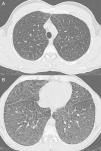 Niemann-Pick disease (N-P) is a lysosomal storage disease in which there is an accumulation of sphingomyelin1 in different tissues. It affects multiple organs and has been classically divided into two subtypes according to phenotype: types A and B.1 A third subtype (type C) has also been described, but it is caused by a different genetic alteration. In type A, there is a neurodegenerative disorder with premature death. Type B causes chronic visceral affectation,2 frequently with later lung affectation. Radiographically, the lung affectation is characterized by an interstitial pattern associated with ground glass opacities. There is a week correlation between lung function and interstitial disease.3 We present a case of N-P disease type B with pulmonary and hepatic affectation. The objective is to describe the pathologic findings of this disease in the lungs, as seen on both simple chest radiography and high-resolution computed tomography (HRCT), and their correlation with lung function testing. We also include a review of the literature.