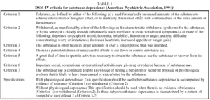 The DSM-IV identifies smoking as "a disorder caused by a substance capable of causing dependence" and classifies it with disorders related to psychoactive substances: nicotine dependence, code 305.103. Thus, nicotine dependence is defined in the DSM-IV as the presence of three or more of the symptoms listed in Table 1 appearing at any moment during the same 12-month period3.