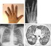 Presentamos el caso de una mujer escasamente fumadora de 43 años, que consultó por la aparición de una tumoración dolorosa en el cuarto dedo de su mano izquierda, sin otros síntomas acompañantes (fig. 1A). Una radiografía demostró una lesión lítica en la falange media del cuarto dedo (fig. 1B). Se decidió realizar una radiografía de tórax, que reveló una llamativa afectación nodular bilateral de aspecto tumoral (fig. 1C). Una TC de tórax confirmó una masa dominante en lóbulo superior derecho e innumerables nódulos bilaterales de pequeño tamaño (fig. 1D).