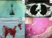 A) Estudio preoperatorio con 99mTc-MIBI mostrando un foco voluminoso de hipercaptación en el mediastino. B) TAC de tórax que muestra una gran masa situada en el área del timo del mediastino anterior. C) Imagen postoperatoria tras la timectomía total que muestra el adenoma paratiroideo ocupando casi todo el lóbulo izquierdo del timo. D) Histopatología postoperatoria donde se observa el adenoma paratiroideo rodeado de tejido normal del timo. Inmunotinción positiva para hormona paratiroidea (recuadro).
