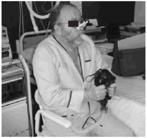 Fig. 3. Patient with amyotrophic lateral sclerosis without significant bulbar dysfunction carrying out insufflation maneuvers to obtain maximum insufflation capacity.