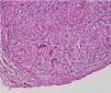We report a case of a 50-year-old Hispanic male with a longstanding history of Crohn's disease, receiving infliximab therapy for nearly one year, At the time of symptom onset, he was receiving infliximab 5mg/kg every eight weeks with adequate disease control. He presented with progressive shortness of breath and right-sided pleuritic chest pain. Chest computed tomography (CT) revealed a moderate-sized right-sided pleural effusion associated with nodular airspace opacities, without pleural thickening or distinct masses. Repeated thoracenteses yielded exudative fluid with normal glucose and pH, lymphocyte predominance, and low ADA levels; however, Extensive analyses including bacterial cultures, cytology, and a normal serum ACE and calcium results, with negative PET/CT, argued against sarcoidosis, as well as tuberculosis testing (QuantiFERON), was negative. As tuberculosis had been excluded and thoracenteses remained nondiagnostic, a blind pleural biopsy was not pursued. Given the superior diagnostic yield and the advantage of direct pleural visualization, a medical thoracoscopy was performed, revealing diffuse pleural nodularity without distinct masses or adhesions (Fig. 1). Histopathological examination of pleural biopsies demonstrated non-caseating granulomas without malignant cells and staining for acid-fast bacilli and fungi were negative (Figs. 2–5).