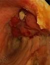 A 74-year-old man presented in the emergency room in November 2012 with bloody expectoration, having expelled a solid “foreign body” of a fleshy appearance. He reported that in the days leading up to the event, he had experienced a sensation of self-limiting wheezing without dyspnea. The patient had no history of smoking or substance or alcohol abuse. In 2003, he required hospital admission for pneumonia and, in April 2008, underwent right upper lobectomy for a typical bronchial carcinoid tumor. At the time of presentation, he was attending regular check-ups and remained free of recurrence.