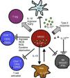 Chronic Inflammation and Immunosuppression: The Role of Myeloid-Derived Suppressor CellsSeveral non-malignant etiological processes, such as infections, inflammatory and autoimmune diseases, like cancer, show a pattern of chronic inflammation associated with immunosuppression. This phenomenon is mediated in part by the MDSCs.18,50 The role of MDSCs in respiratory diseases, including asthma, pneumonia, and cystic fibrosis, has recently come under scrutiny.51–54 MDSCs comprise a morphologically heterogeneous population of cells produced in the bone marrow. They occur in various states of differentiation and maturation and are characterized by their ability to inhibit the function of different components of the innate and adaptive immune system, such as NK cells, CD4+ and CD8+ T cells, dendritic cells and macrophages.18 They were first described, 40 years ago, as “natural suppressors” in animal tumor models, in which they were associated with the dysfunction of cytotoxic lymphocytes.55 In the inflammatory and malignant disease states described above, cytokines and soluble factors, such as GM-CSF, G-CSF, M-CSF, SCF, INF-γ, IL-1β, VEGF and IL-3, are released. This phenomenon affects myelopoiesis by increasing the proliferation of myeloid precursors and partially blocking their differentiation. MDSCs accumulate and subsequently migrate to secondary lymphoid organs and tissues, where they act as immune suppressors. MDSCs use a variety of mechanisms to modulate immune response, including depletion of l-arginine, an amino acid nutrient critical to T cell functioning. To achieve this, MDSCs release arginase I (ARG I), an l-arginine-degrading enzyme, into the tissue microenvironment and the bloodstream. l-Arginine deprivation reduces the expression of TCR ζ, preventing the T-cell proliferation and production of effector cytokines56–58 (Fig. 2).