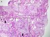 Biopsia transbronquial obtenida mediante fibrobroncoscopia, donde se puede observar parénquima pulmonar peribronquial con proliferación fibroblástica intraalveolar (flechas), indicativo de un patrón histológico de neumonía organizada. A: hematoxilina-eosina (×10 aumentos). B: hematoxilina-eosina (×20 aumentos).