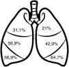 Radiological dataFig. 3 shows the distribution of bronchiectasis by pulmonary lobes. The most frequent locations were the lower lobes (64.7–56.9%) and the middle lobe (56.9%). Bronchiectasis in more than 2 pulmonary lobes was observed in 48.2%, 90.9% of which were cylindrical. Varicose bronchiectasis was detected in 26.4% of the patients and cystic bronchiectasis in 21%. In addition, 19.4% presented radiological images consistent with bronchiolitis (“tree-in-bud” image).