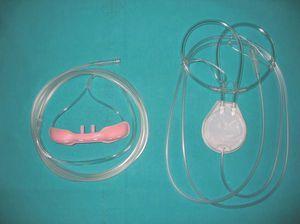 Las cánulas reservorio nacieron a mediados de los años ochenta con la intención de aumentar la eficacia de las cánulas nasales convencionales. Para ello, aumentan el volumen de oxígeno administrado al inicio de la inspiración, hecho que representará una mayor FiO2 en la fracción de volumen corriente que realmente participa en el intercambio gaseoso. El reservorio dispone de una membrana que se desplaza durante la espiración, lo que permite el almacenamiento de unos 30-40 ml de oxígeno proveniente de la fuente (y que normalmente se desperdiciaría), el cual se administra como un bolo al comienzo de la inspiración. Se dispone de 2 modelos: Oxymizer, en el que el reservorio se coloca directamente en la nariz, y el Oxymizer Pendant, en el cual el reservorio se sitúa en el pecho y se conecta a la nariz por medio de 2 cánulas nasales de mayor grosor que las convencionales (fig. 1). Usando este sistema se puede mantener una saturación de oxígeno adecuada, con un menor flujo administrado35, lo que produce el ahorro de oxígeno deseado. Su uso está indicado tanto para aumentar la autonomía de las fuentes portátiles como para optimizar el tratamiento de pacientes que utilicen fuentes fijas, dado que éstas, a veces, no pueden alcanzar el flujo necesario con los sistemas de administración convencionales. No obstante, las cánulas reservorio presentan el problema de que, a elevada frecuencia respiratoria, como ocurre en las enfermedades restrictivas, los pacientes utilizan más la boca para respirar, lo que disminuye su eficacia36, por lo que hay que concienciar a los pacientes para que respiren siempre por la nariz. A pesar de ser más efectivas, en un estudio clásico de Clairbone et al37 algunos pacientes rechazaron su uso argumentando una pérdida de comodidad respecto a las cánulas convencionales (molestias en la nariz y las orejas, por ser más pesadas y gruesas), así como por ser un método menos estético. Los estudios de Arlati et al36, Soffer et al38 o Collard et al39 ya demostraron la eficacia de las cánulas reservorio para ahorrar oxígeno, manteniendo una adecuada saturación. Sin embargo, a pesar de ser un método bastante similar al convencional y, por lo tanto, sin grandes complicaciones para los pacientes, su uso está poco introducido entre los pacientes de nuestro medio.