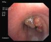 This is an endoscopic image (Fig. 1) from a 40-year-old woman who presented with a 3-month history of cough and progressive dyspnea. On the chest computed tomography (CT), a mass could be seen in the anterior segment of the right upper lobe (RUL), invading the mediastinum and surrounding the tracheal bifurcation, with signs of tracheal invasion of the right primary bronchus and the superior vena cava. Despite fiberoptic bronchoscopic resection of the mammilated lesion that obstructed 50% of the tracheal lumen, no diagnosis could be made until a mediastinal biopsy was performed by video-assisted thoracic surgery (VATS), confirming primary mediastinal non-Hodgkin large B-cell lymphoma. After completing 6 cycles of chemotherapy with rituximab, cyclophosphamide, doxorubicin, vincristine, etoposide and prednisone, complete radiological and metabolic response was observed on PET-CT with 18FDG, and the patient achieved full remission.