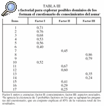 El test de Kaiser-Meyer-Olkin y el test de esfericidad de Bartlett mostraron que la muestra cumplía los criterios para realizar el análisis factorial. Éste demostró una estructura probable de 3 factores, que en conjunto explican el 85% de la varianza total de los resultados. Un cuarto factor, con el que se explicaría hasta el 97% de la varianza, no pudo mantenerse en función del criterio de Kaiser por alcanzar un valor propio de 0,87. Tras la rotación de la matriz, un primer factor incluyó ítems relacionados con los mitos y creencias acerca del manejo del asma, un segundo factor incluyó ítems relacionados con conocimientos acerca de la enfermedad, y un tercer factor incluyó ítems relacionados con otros aspectos del asma tales como la actividad física y el tabaquismo (tabla III).