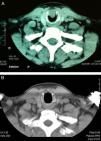 We describe the case of a 50-year-old man who attended due to a three-month history of progressive dyspnoea on moderate and heavy exertion, with mild inspiratory stridor. A history of previous intubation due to two collarbone surgeries two years previously was noted. Nasofibrolaryngoscopy showed a right anterior subglottic lesion; its extension was determined by computed axial tomography (CT) (Fig. 1A). Rigid bronchoscopy and laser resection (Neodymium-YAG) was scheduled; during surgery, biopsies were taken and partial vaporisation of the lesion was performed. The histopathological result was consistent with a pleomorphic adenoma, so subglottic resection was carried out using an open approach in a second surgical procedure: the trachea was exposed with an incision over the second ring, similar to a tracheotomy; cricothyroid membrane incision; vertical connection of the left side of both incisions (cricoid arch and tracheal ring section), lifting a flap to visualise the lesion directly (15cm in diameter, situated along the inside of the cricoid arch up to the height of the upper border of the first tracheal ring). Tumour excision was completed with partial cricotracheal resection (cricoid arch and anterior portion of the first tracheal ring). The defect was closed by primary reconstruction with sternothyroid muscle plasty over a Montgomery silicone T-tube (8mm) and layered wound closure. After five days, the patient was discharged with mild-moderate cervical subcutaneous emphysema, which persisted for five weeks, odynophagia, requiring a soft diet for one month, and dysphonia due to the placement of the upper rim of the stent on the vocal cords. The definitive histopathological study was a benign salivary gland tumour, consistent with basal cell adenoma (monomorphic adenoma), with clear margins. The T-stent was removed after four months. Vocal granulomas were detected, which disappeared in two weeks after treatment with oral prednisone (30mg in tapered dosage), and the voice returned to normal. The case has been monitored by nasofibrolaryngoscopy and radiological follow-up (Fig. 1B) for the last 1.5 years, with no evidence of recurrence to date.