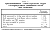 Table 4 shows the diagnostic yield for TA at 2 different cutoff points for bacterial counts (≥105 and ≥106), and for PTC. The sensitivity of TA with a cutoff of ≥105 and that of PTC were significantly higher than that of TA with a cutoff of ≥106 (P=.0001 and .01, respectively), and the difference between TA≥105 and PTC≥103 was not significant (P=.40). The kappa (κ) statistic for the agreement between PTC≥103 and TA≥106 was 0.41, and the same statistic between PTC≥103 and TA≥105 was 0.63.