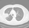 Varón de 52 años, fumador activo, que consultó por fiebre, malestar general y expectoración hemoptoica de 15 días de evolución. En la auscultación pulmonar llamaba la atención la presencia de estertores crepitantes aislados. En la radiografía de tórax se visualizaba una condensación en lóbulo superior derecho y aumento de tamaño hiliar homolateral. Se pautó tratamiento con levofloxacino con escasa mejoría, por lo que se solicitó una TC torácica que mostraba una condensación con broncograma aéreo en segmento posterior de lóbulo superior derecho (fig. 1), adenopatías hiliares derechas y en espacios pretraqueal retrocavo y prevascular. Se realizó una broncoscopia, macroscópicamente normal, con muestras citológicas y baciloscopia de aspirado bronquial sin anomalías. Por ello se programó una biopsia pulmonar con aguja gruesa guiada por TC, cuyo estudio histológico reveló la presencia de granulomas con células gigantes multinucleadas e histiocitos transformados tipo célula epitelioide, alguno de ellos con necrosis central. Se comenzó tratamiento con isoniacida, rifampicina, piracinamida y etambutol. Posteriormente se aisló en el cultivo de micobacterias del aspirado bronquial, M. interjectum, utilizando tecnología de ADN basado en la hibridación inversa de los productos de PCR dirigidos a la región del gen 23S rRNA (GenoType®Mycobacterium CM). La evolución fue satisfactoria y al segundo mes el cultivo de micobacterias fue negativo. Se mantuvo el régimen terapéutico, retirando pirazinamida y etambutol, continuando con isoniacida y rifampicina hasta completar un año, momento en el que el paciente se encontraba asintomático, mostrando la radiografía de tórax un infiltrado fibrocicatricial en lóbulo superior derecho. En la actualidad, 20 meses después, permanece estable sin evidenciarse reactivación de la enfermedad.