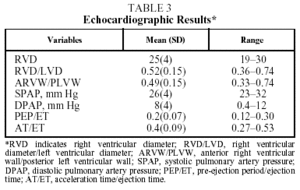 The echocardiographic results in Table 3 show no alterations that would indicate the presence of heart disease associated with pulmonary artery hypertension.