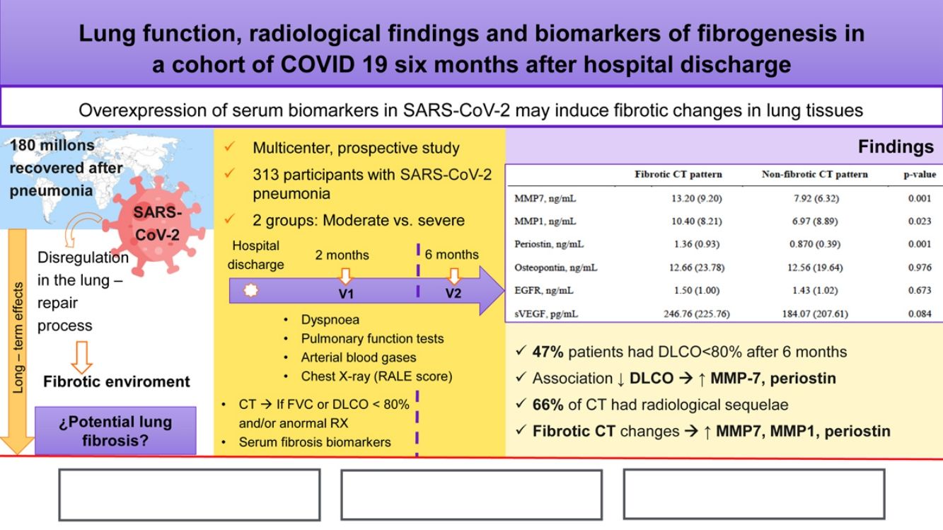 This work was supported by the Institute of Health Carlos III (COV20/01209), Ministry of Science and Innovation of Spain. We thank all the staff of the COVID-FIBROTIC team (see Appendix). We also thank Natividad Blasco PhD for her technical support and Lorena Peiro PhD, INCLIVA biobank director, member of the Spanish Biobank Network, for her work in the handling of blood samples. Finally, we are very grateful to patients who had suffered from the pandemic and yet were always willing to help in our work.