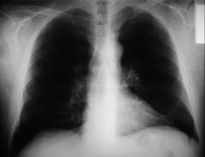 Fig. 1. Placa posteroanterior preoperatoria, sin evidencia de tumor bronquial.