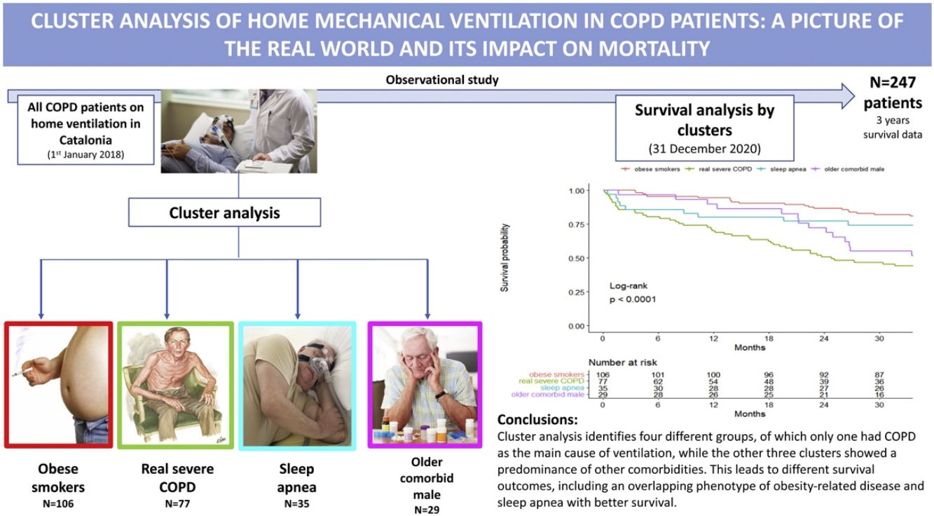 AimTo create a curated cohort of all COPD patients on HNIV in Catalonia, perform a cluster analysis, and evaluate mortality evolution.