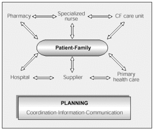 Thus, training of patient and family will be given by the nurse from the CF unit or nurses from the hospital ward/day hospital or the nurse in charge of home health care according to the characteristics of each unit. Participation of the nurse from the primary care center will be necessary when patients live far from the hospital.