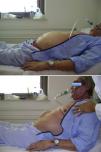 For years, Dr. Sueiro has been calling attention to the existence of a COPD morphotype that is very frequent in the hospital ward and in outpatient consultations. These patients have a certain degree of trunk obesity, short neck, increased ribcage diameter at the lower portion, and diastasis of the anterior straight muscles (Fig. 1). They usually present overall respiratory failure, with slightly high levels of PaCO2 (50–55mmHg), and pulse-oximetry shows levels of arterial saturation below 90%, but these recover when the patient does hyperventilation and Valsalva maneuvers (halting expiration, coughing or simulated laughter), even reaching levels of 95%. Spirometry shows moderate bronchial obstruction (FEV1 levels compatible with GOLD stages II–III). These patients usually receive home oxygen therapy and, on occasion, also night-time mechanical ventilation with double pressure levels. If this type of patient lies down in bed and is then asked to sit up, he/she presents a herniation of the abdominal content at the diastasis of the straight muscles of the upper abdomen (Fig. 2), which we call “Sueiro's sign”. More advanced cases present umbilical hernia, forming what we call “Sueiro's triad”: diastasis recti, upper abdominal herniation when rising and umbilical hernia.