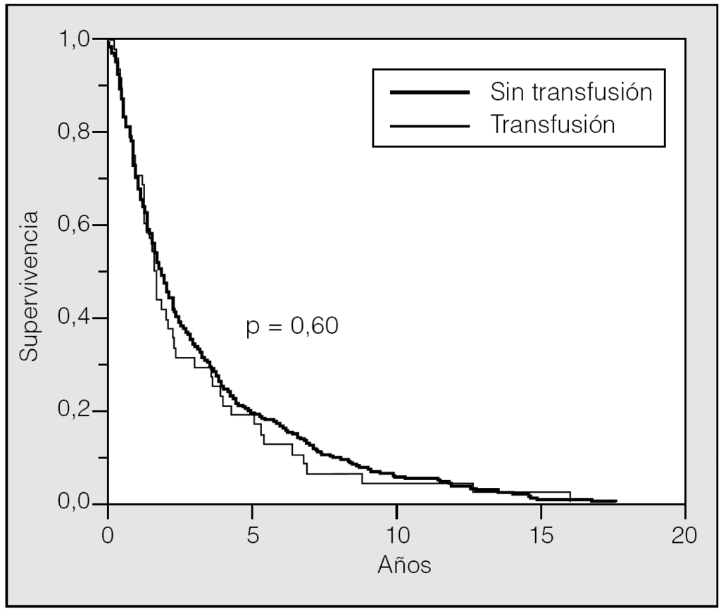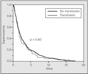Fig. 2. Supervivencia transfusión-no transfusión.