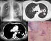 Mujer de 57 años, fumadora, sin otros antecedentes de interés. Acude por disnea de una semana de evolución, tos con expectoración y febrícula. La radiografía de tórax muestra múltiples imágenes nodulares bilaterales, algunas cavitadas (fig. 1a). En la tomografía computarizada (TC) se confirma la presencia de múltiples masas cavitadas en ambos hemitórax, con calcificaciones amorfas (figs. 1b y c). La serología frente a hidatidosis fue negativa, así como el cultivo de micobacterias en medio de Löwenstein de las muestras de esputo y broncoaspirado.