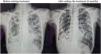 We present the case of a 37-year-old woman, regular smoker, originally from Russia, who had recently traveled to Italy and stayed there for several months. She reported a 6-mont-clinic of persistent cough, purulent sputum, minimal exertion dyspnea, hyporexia, and a weight loss of 20kg. On physical examination, she exhibited only a low-grade fever and severe malnutrition (height 175cm and 48kg). Laboratory tests revealed anemia with a hemoglobin level of 9.4g/dL, leukocytosis of 23,700/mm3 with lymphopenia (1020/mm3, 4.3%), and thrombocytosis of 1,282,000/mm3. Chest radiography showed extensive involvement of the lung parenchyma with bilateral micronodular pattern, cavities in both hemithorax (largest measuring 13 and 7cm in right lung) and multiple mediastinal lymph nodes. Microbiological testing revealed positive smear (auramine staining) and PCR for Mycobacterium tuberculosis, with rifampicin resistance detected by GeneXpert MTB/RIF. Sensitivity molecular and phenotypic testing confirmed resistance to isoniazid (mutations in katG and inhA genes), ethambutol, and aminoglycosides, but without fluorquinolones resistance.