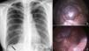 Paciente mujer de 41años de edad con antecedentes de neumotórax espontáneo derecho tratado con drenaje endotorácico. Es valorada en nuestro servicio por neumotórax espontáneo recidivante, objetivándose en la radiografía de tórax, además del neumotórax, una lobulación diafragmática (fig. 1a, flecha). Mediante abordaje videotoracoscópico se observó una hernia diafragmática congénita (fig. 1b) que se reparó con puntos sueltos de monofilamento, sin evidenciarse otras lesiones que pudieran justificar el origen del neumotórax (fig. 1c). La paciente fue dada de alta el cuarto día postoperatorio sin complicaciones.