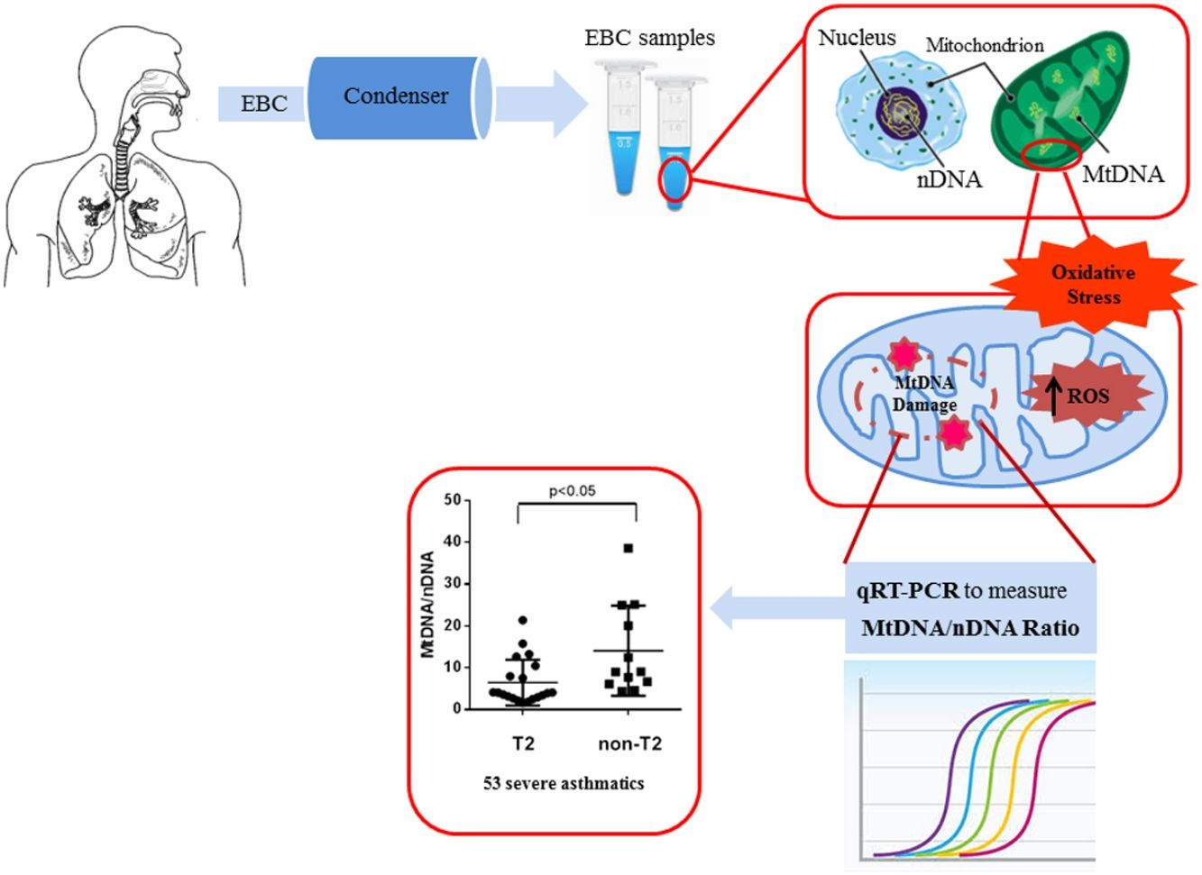 Our group recently showed an increase of MtDNA/nDNA in patients with asthma, COPD and ACOS, measuring it for the first time in the EBC, a sample from airways that is collectable with complete non-invasiveness by just breathing at tidal volume in the condenser device.13
