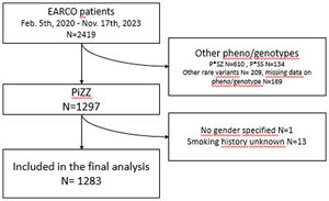 MethodsBaseline data from PiZZ individuals, enrolled in the registry with complete data on sex and smoking history were analysed by group comparisons and binary logistic regression analyses.