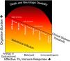 Modified from the damage–response framework of microbial pathogenesis. (24). As the immune response is less effective due to HIV-infection, energy or dysfunctional responses (e.g. Th2 or neutrophil response) immune control of the pathogen is less effective, and TB bacilli are more easily detected by microbiologic diagnostics. As a more effective Th1immune response occurs, less viable TB bacilli exist and diagnosis by traditional techniques becomes more challenging. In the extreme, such as in paradoxical immune reconstitution inflammatory syndrome, immunopathology can occur in the absence of viable or detectable organisms. Mortality is highest in those with the most attenuated or exuberant inflammatory responses.