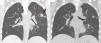 Se inició tratamiento antifúngico para la aspergilosis con evolución clínica favorable. Tres semanas después de iniciarse el tratamiento se efectuó una TC de seguimiento, que mostró cavitación de múltiples nódulos con persistencia de escaso componente sólido en el interior de los mismos. Este signo se conoce como el «signo del menisco» (fig. 1B) y está presente en un 50% de los casos2. Representa la separación entre el parénquima necrótico y el sano, y cuando se observa después del «signo del halo», reafirma el diagnóstico de aspergilosis1.